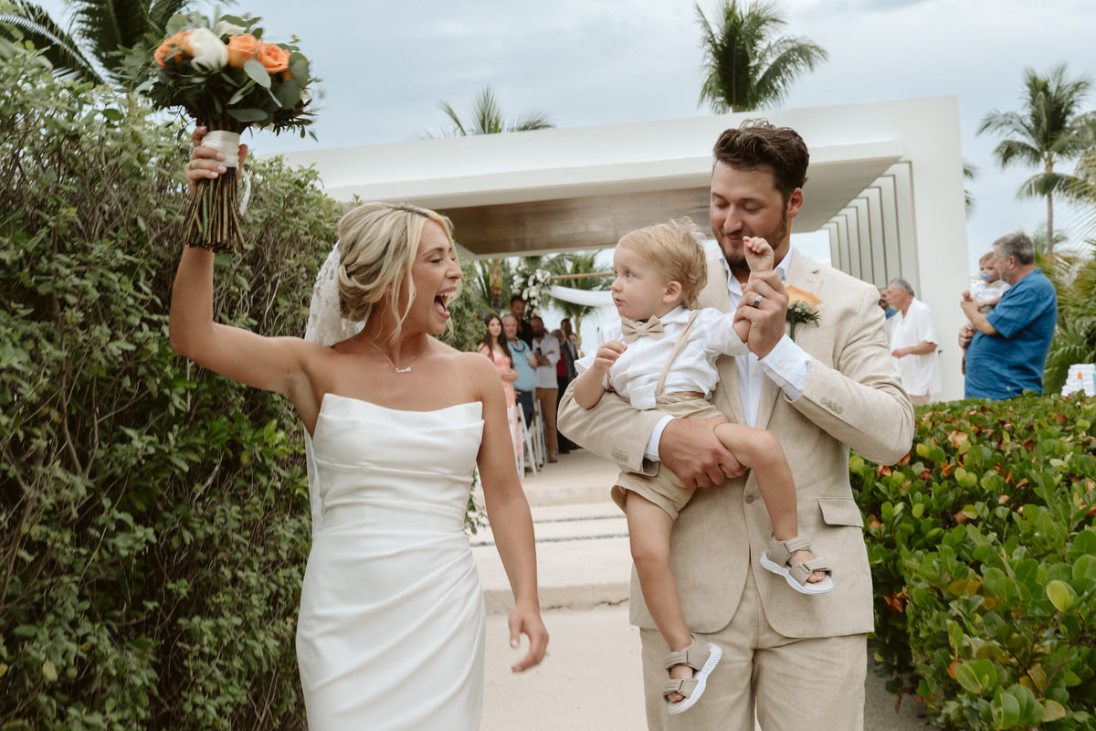Their son, of course decided he wanted to be involved in the ceremony, was scooped up by auntie and then by mom and dad leaving the ceremony together. Weddings with littles – honestly let them do their thing – roll with it just let it happen – it’s inevitable adorable.