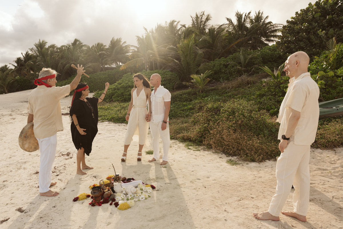 A spontaneous wedding ceremony with friends on a private Riviera Maya beach